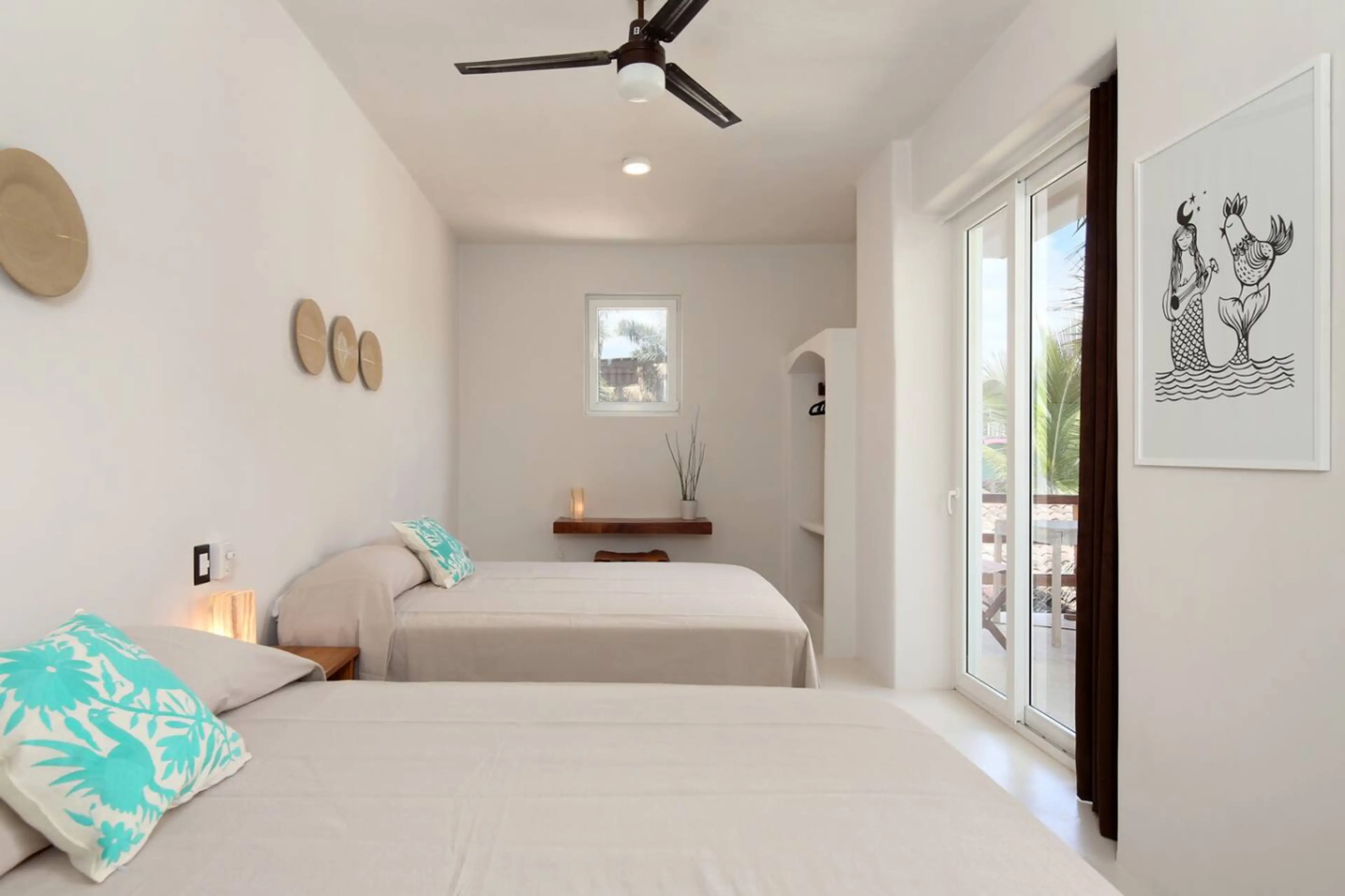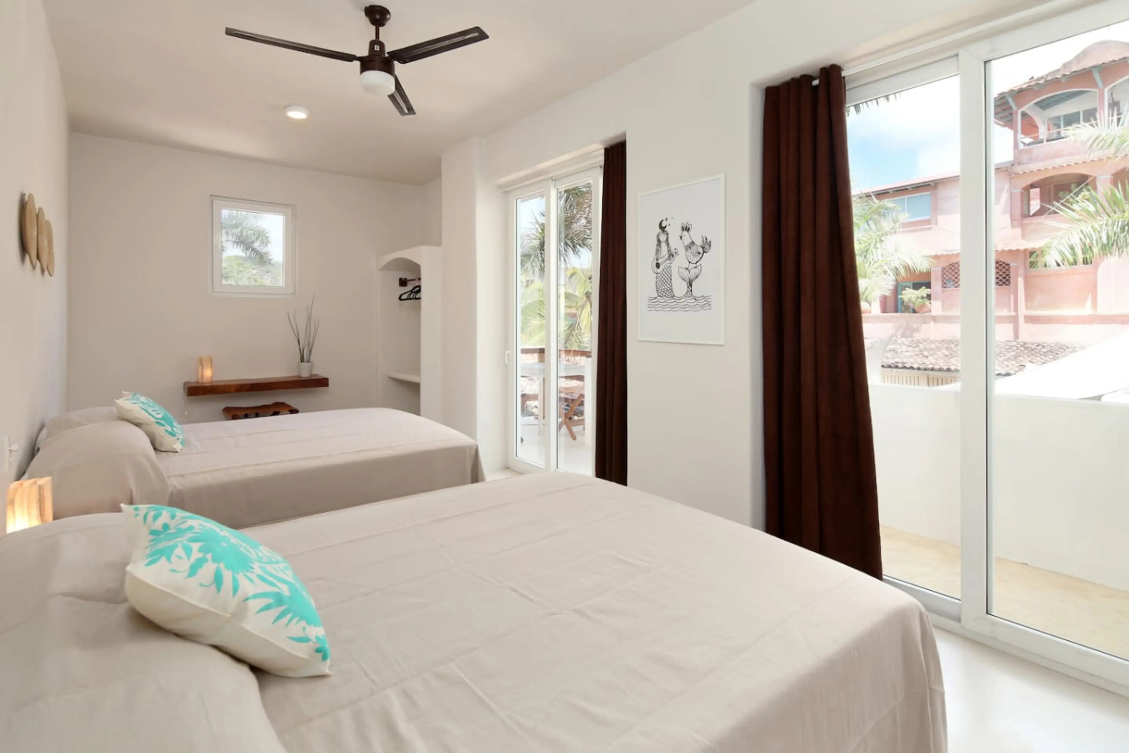 Steps from the beach! Jardin Loft at Ágora is a spacious, multi-person suite. With two queen beds, and work table, this space would be perfect for two friends working abroad or a family. Jardin Loft is one block from the plaza and just steps to the main beach. The loft also includes a balcony wit...
